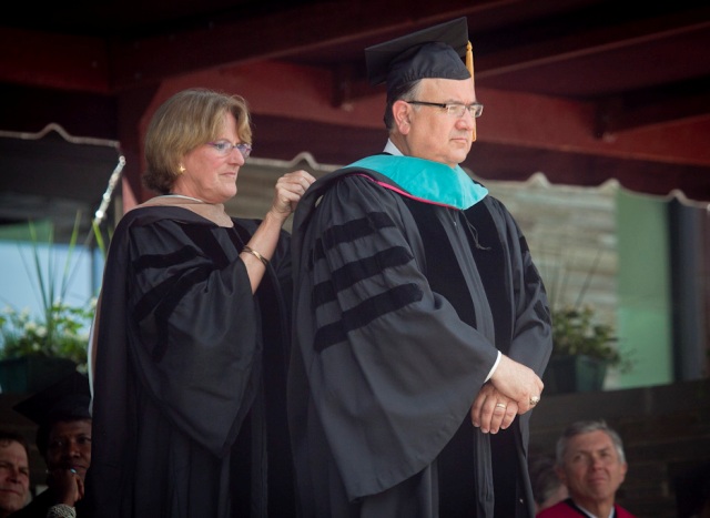 THEREFORE, by the authority granted by the Commonwealth of Pennsylvania to the Trustees of Lafayette College and by them delegated to me, I award you the degree of DOCTOR OF PUBLIC SERVICE, honoris causa, with all the rights, honors, and privileges thereto appertaining, in token whereof I present you with this diploma and direct that you be vested in the hood emblematic of the degree.