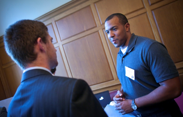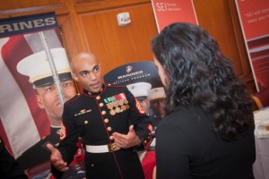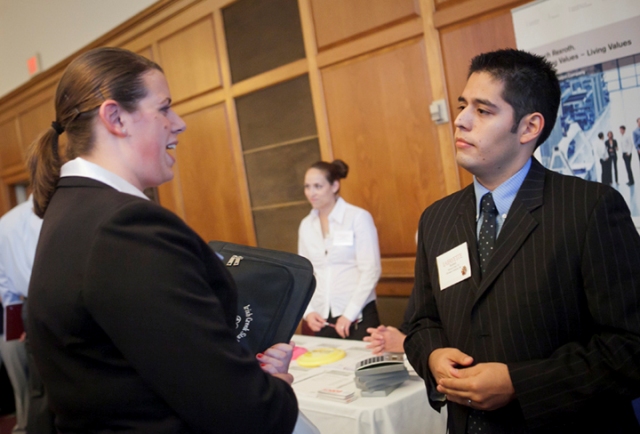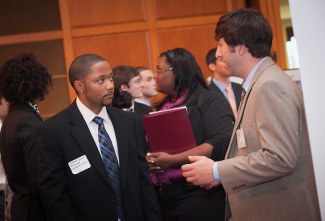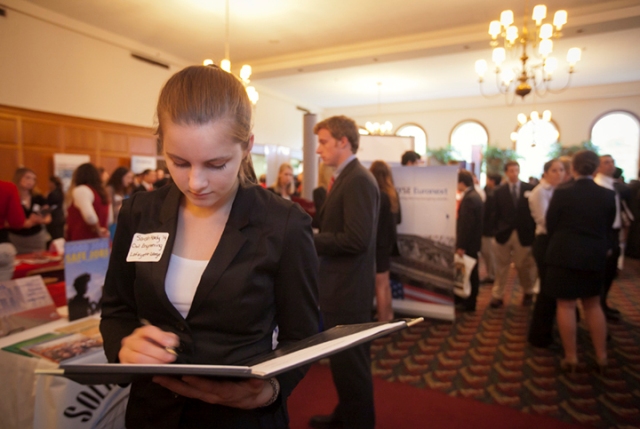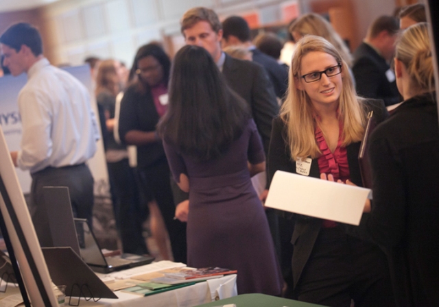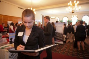 Hundreds of students attended the College’s annual Career Fair looking to connect with more than 50 employers for internship and job opportunities. Hosted by the Office of Career Services, the event features numerous alumni who serve as representatives for their companies.