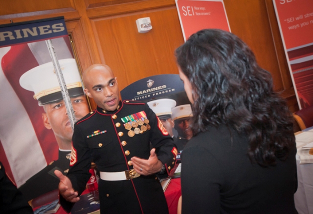 Some of the companies at the fair included Air Products & Chemicals, Inc., American Cancer Society, American Red Cross, Bureau of Diplomatic Security, Bloomberg LP, Cigna, Disney Consumer Products, Exxon Mobil, Johnson & Johnson, Lutron Electronics, M&T Bank , Olympus, Target, and Turner Construction.