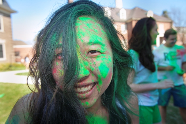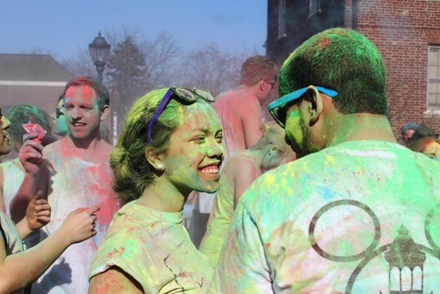 Over the weekend, students celebrated Holi, the Hindu “Festival of Colors,” in the courtyard behind Grossman House. Observed primarily in India and Nepal, Holi celebrates the vibrant colors of spring and is intended to break down the social boundaries of class, religion, gender, and age. The highlight of Holi is when people throw colorful scented powder and perfumed water at each other.