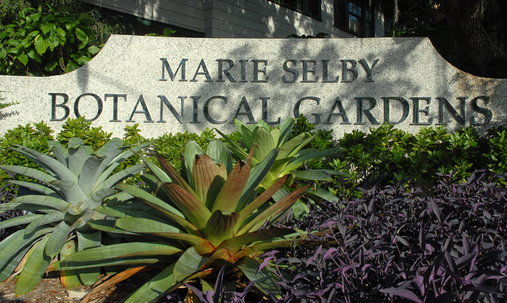 Selby, which opened in 1975, includes more than 20,000 greenhouse plants, plus thousands more in the outdoor gardens. The collection is focused on epiphytes—mostly tropical plants that grow in the tree canopy—such as orchids, bromeliads, and gesneriads. Some examples of gesneriads are African violets and gloxinia.