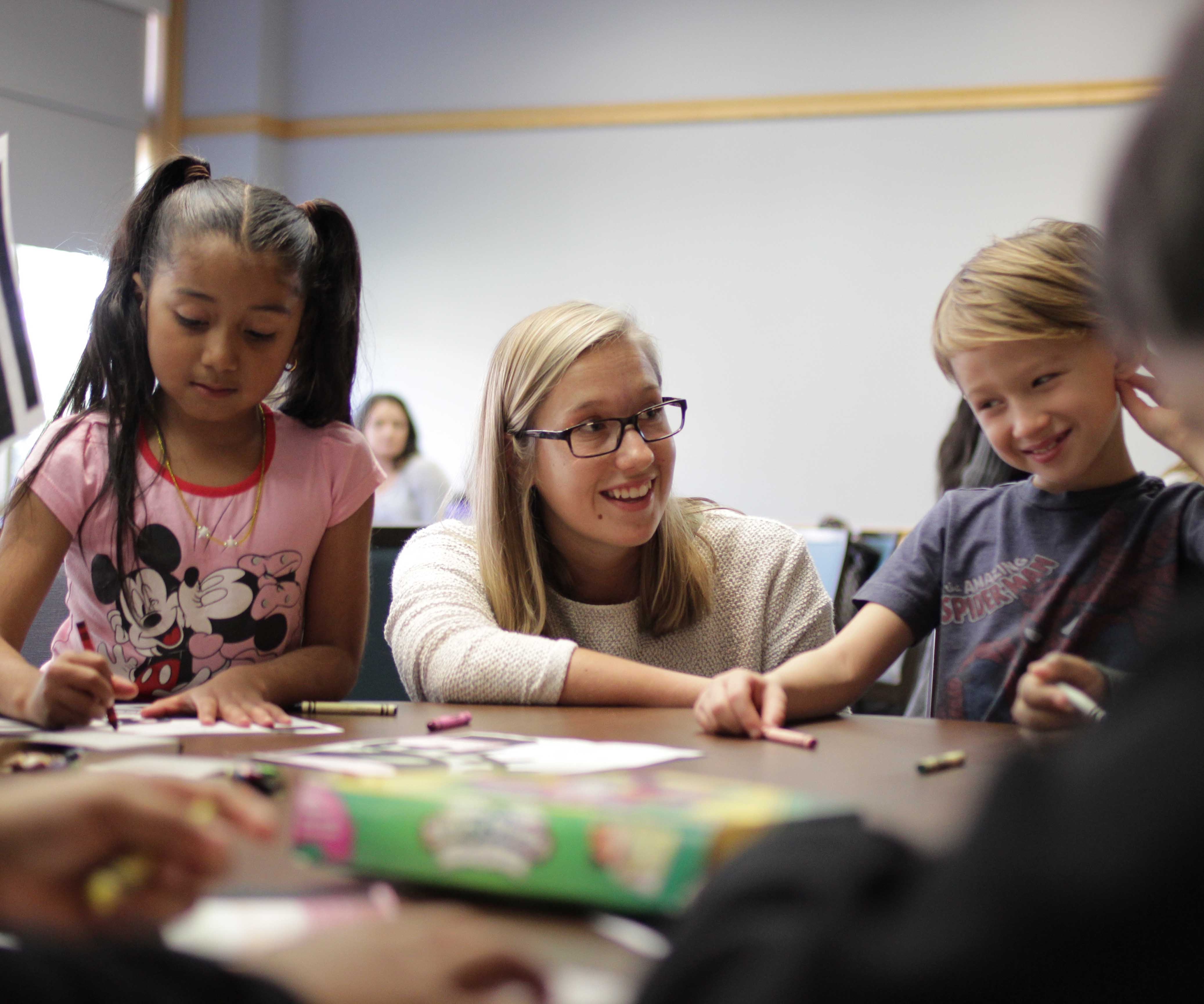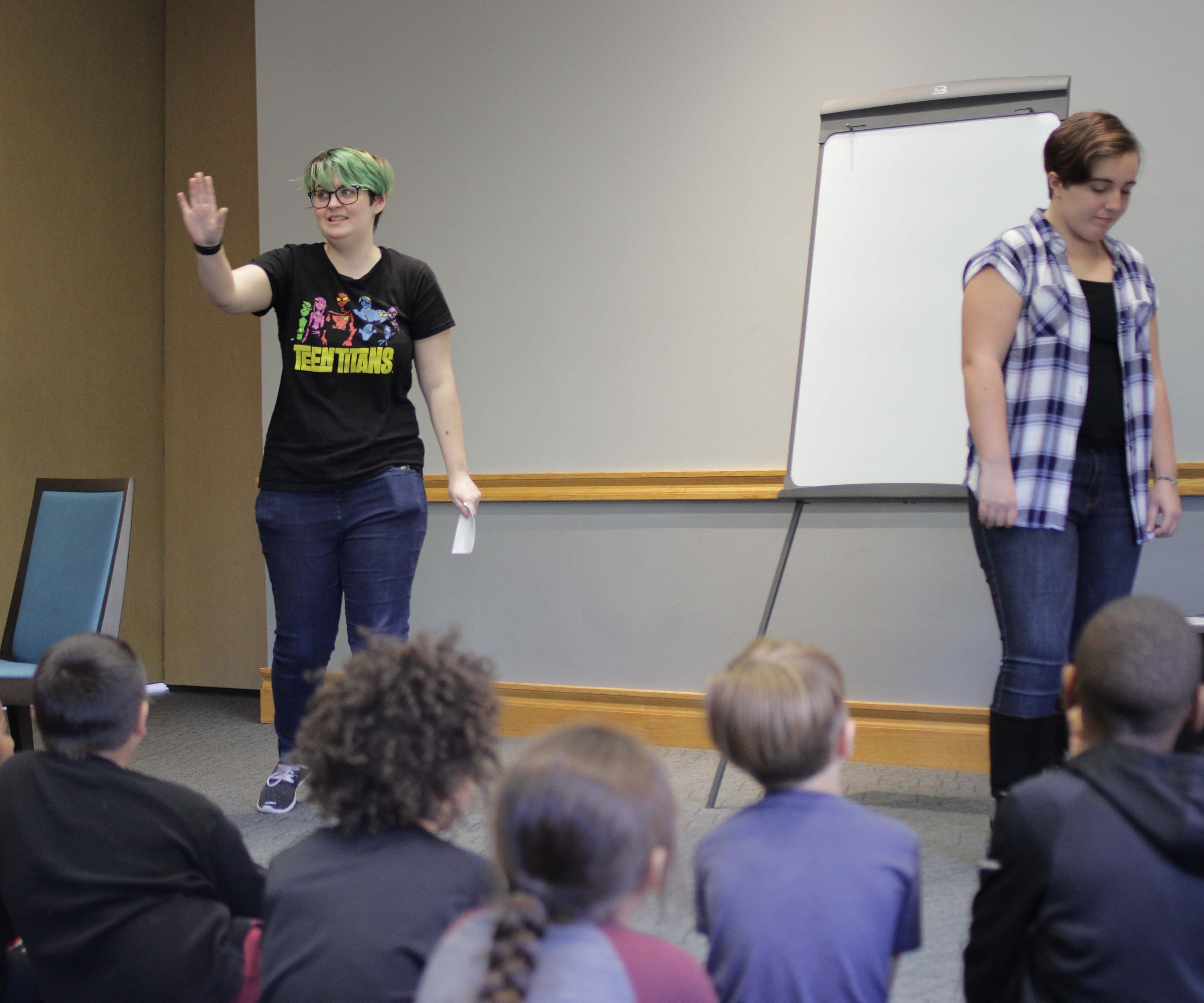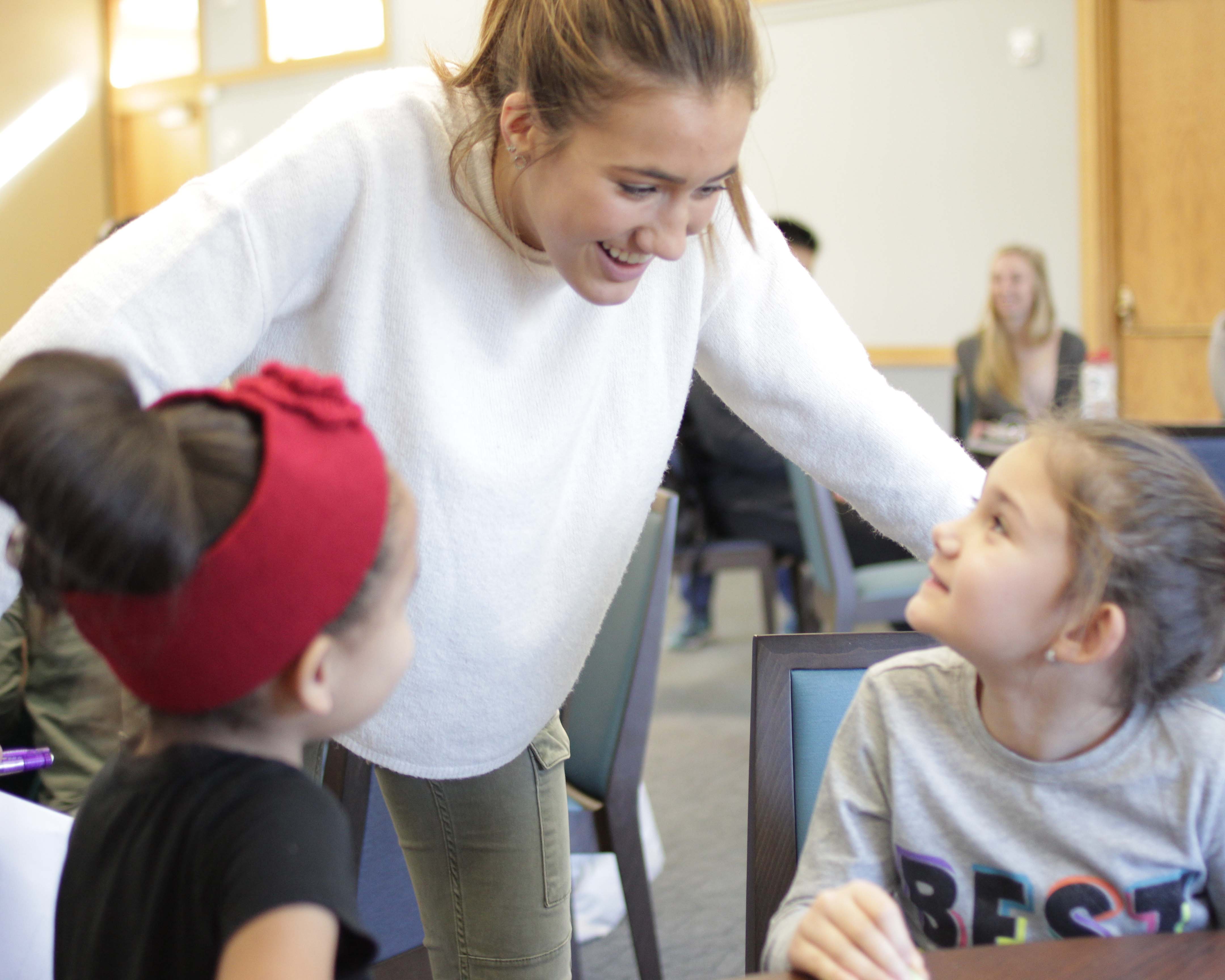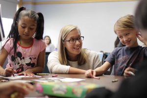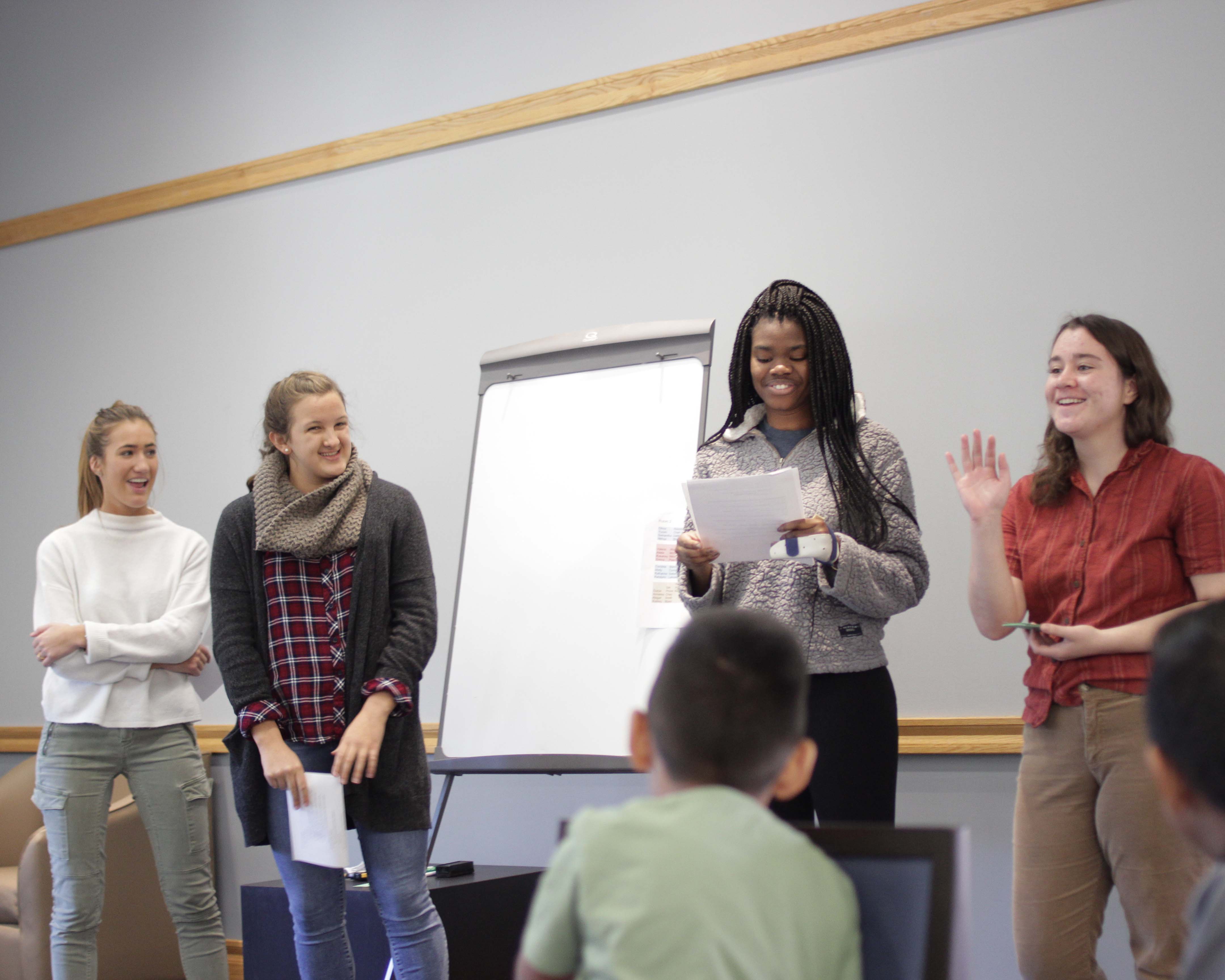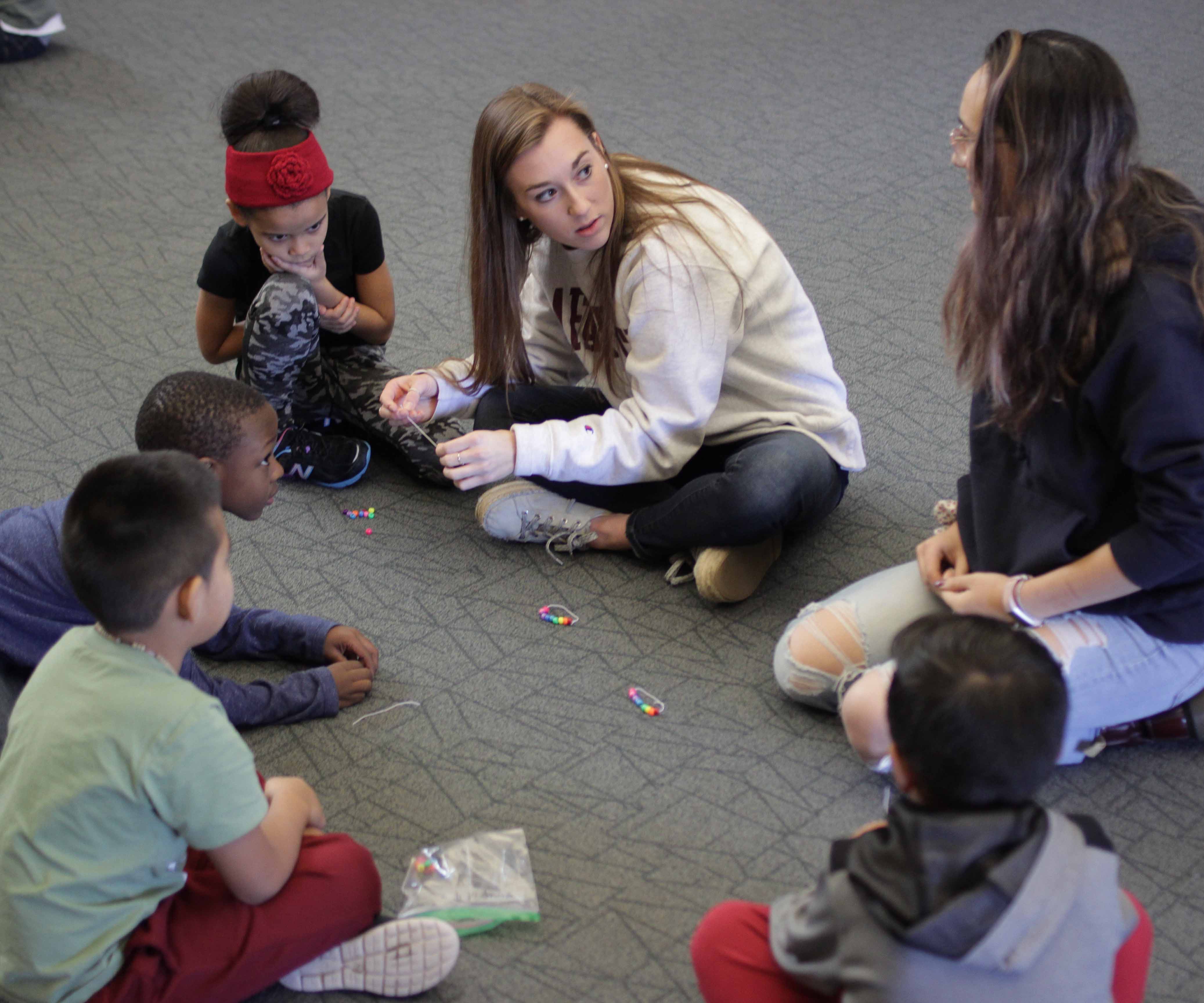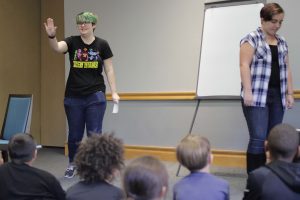 Lauren Myers, assistant professor of psychology, and students in her Lifespan Development class partnered with Paxinosa Elementary second-grade teacher Michelle Gifford to present mini-modules on social skills.