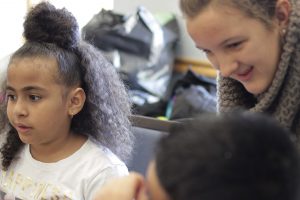 “It’s important for my students to hear what it’s like in college, to have a conversation about school, and to realize that places like this exist outside their elementary school and in their community. Many of the Lafayette students volunteer at the community center so they already know my students. Seeing a familiar face and that the college students remember their names means so much. They really took to each other and built a relationship.”