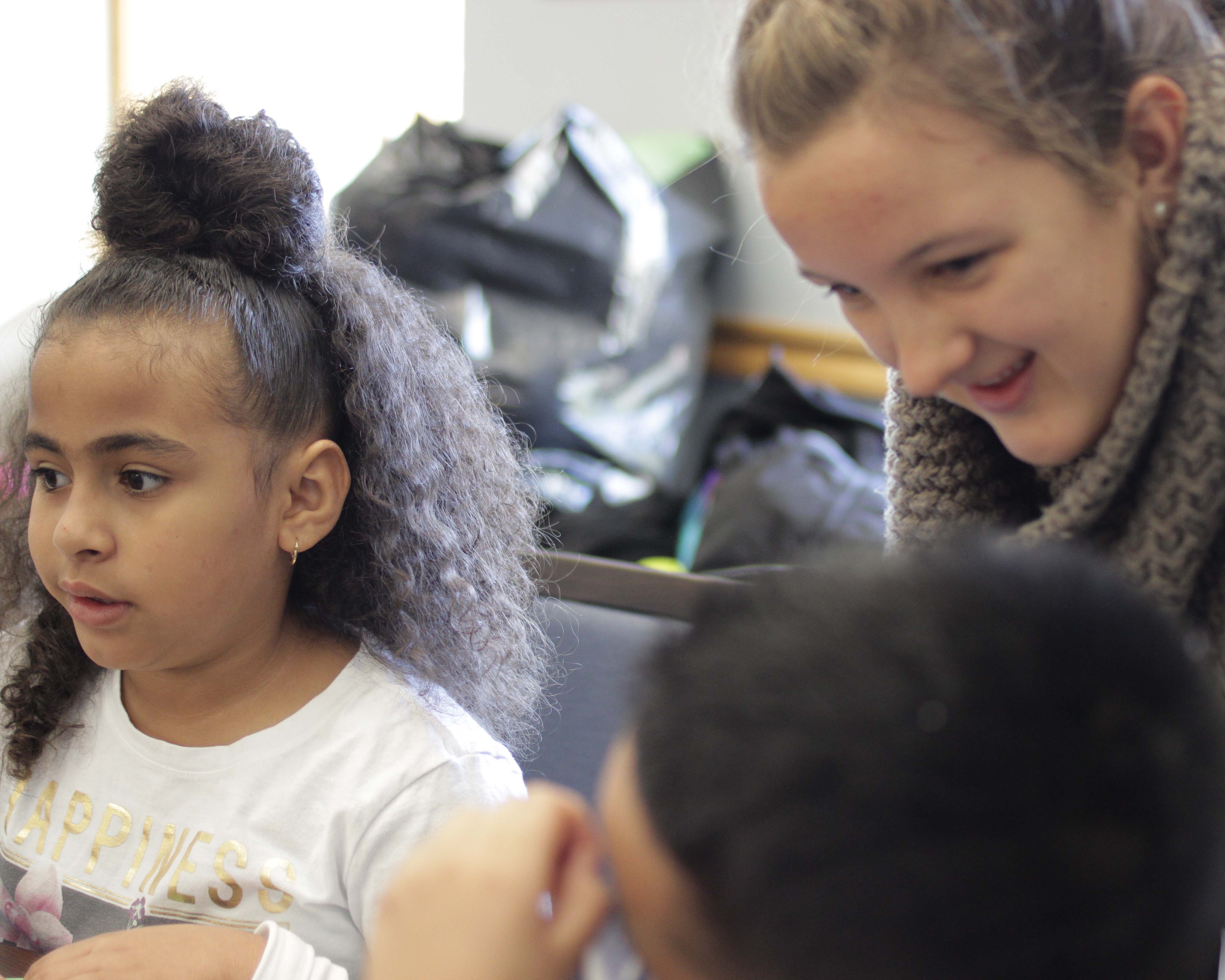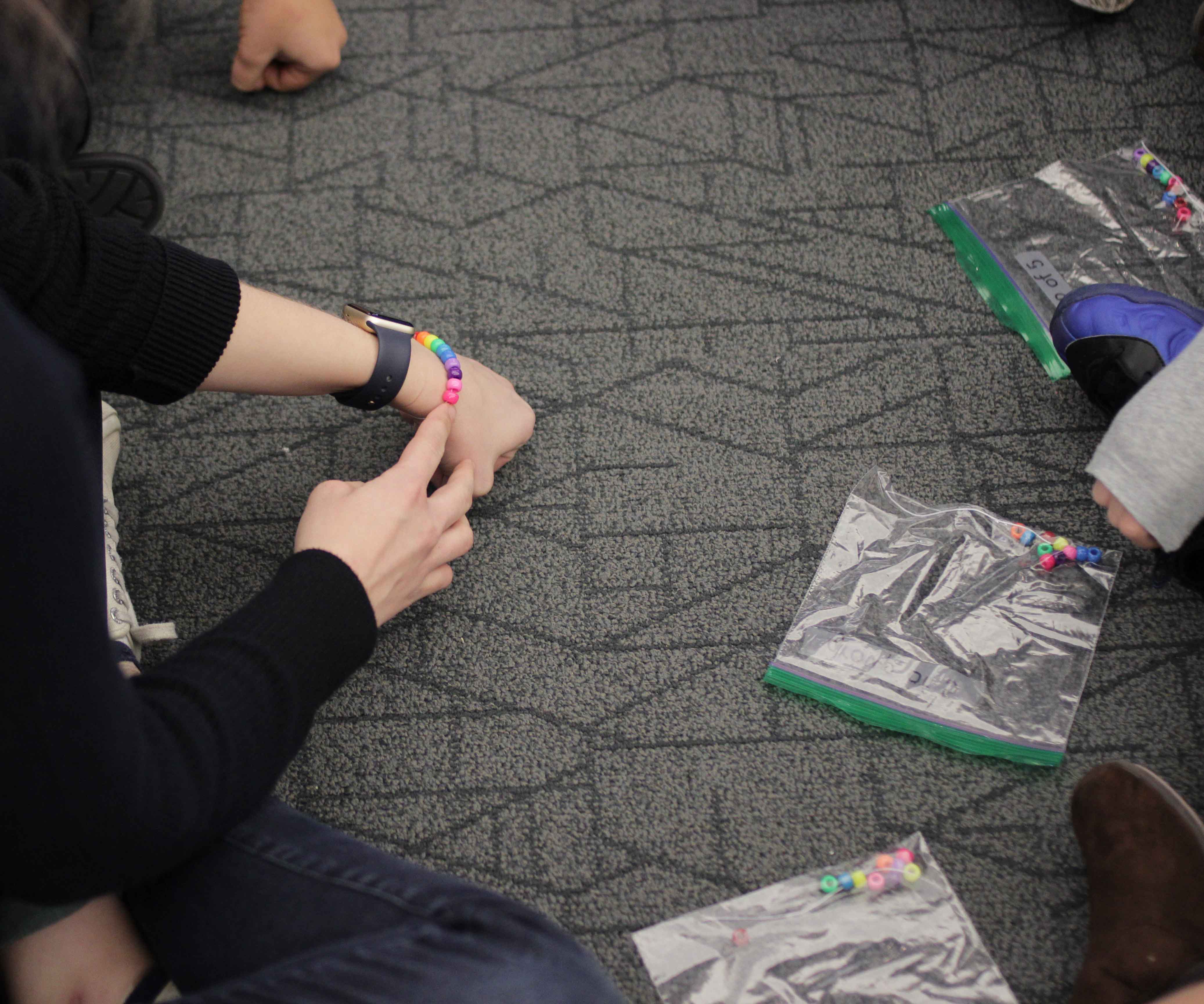 After hearing the story Stone Soup, a tale about a hungry traveler making a delicious soup with ingredients shared by many, students had to think about sharing … as they made rainbow bracelets! Not each bag had the full spectrum, so students had to work together and trade.