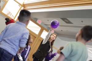 One person keeping one balloon in the air is hardly a challenge. Adding more balloons quickly raises the stakes. But if friends work together, they can keep more balloons aloft.