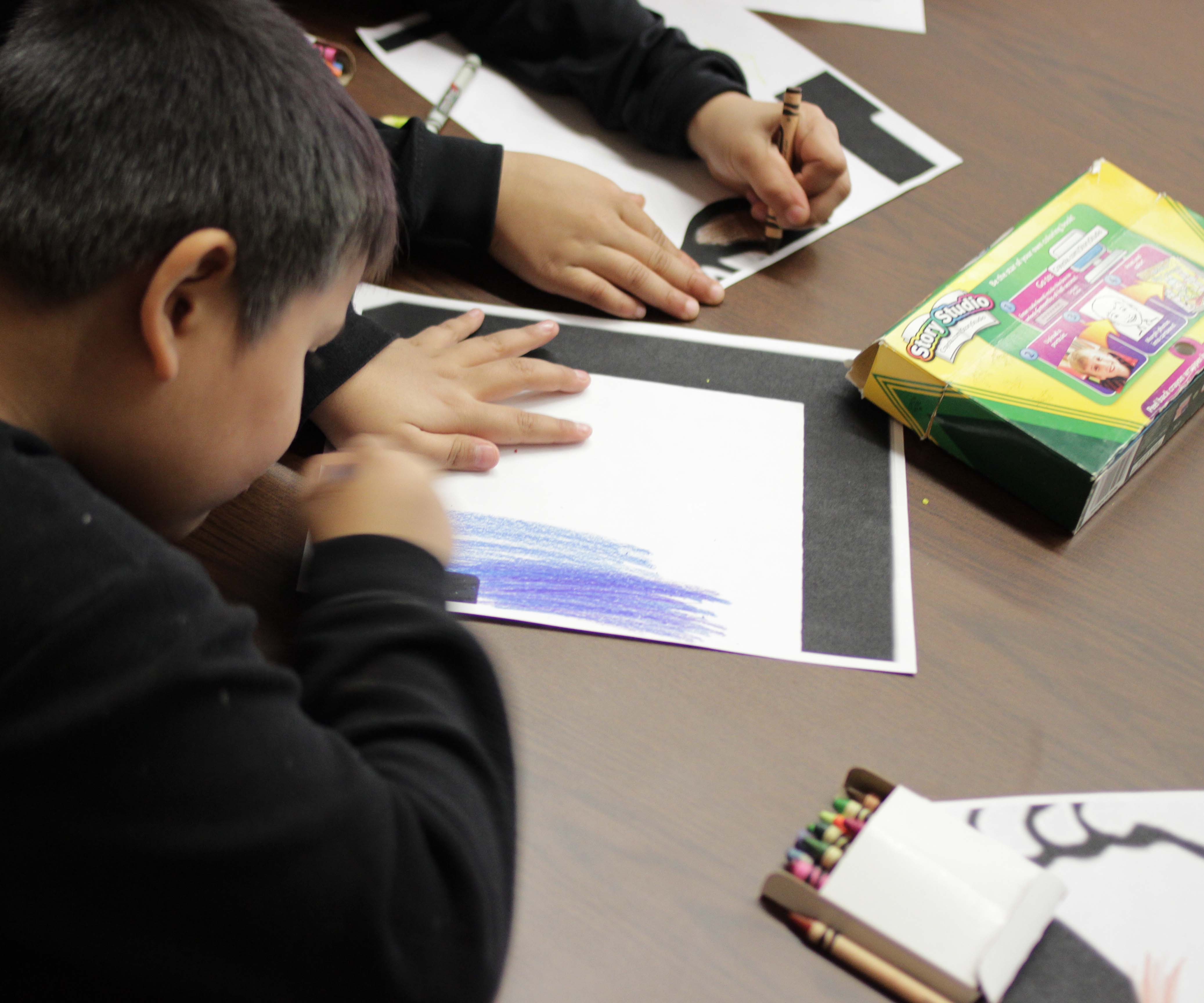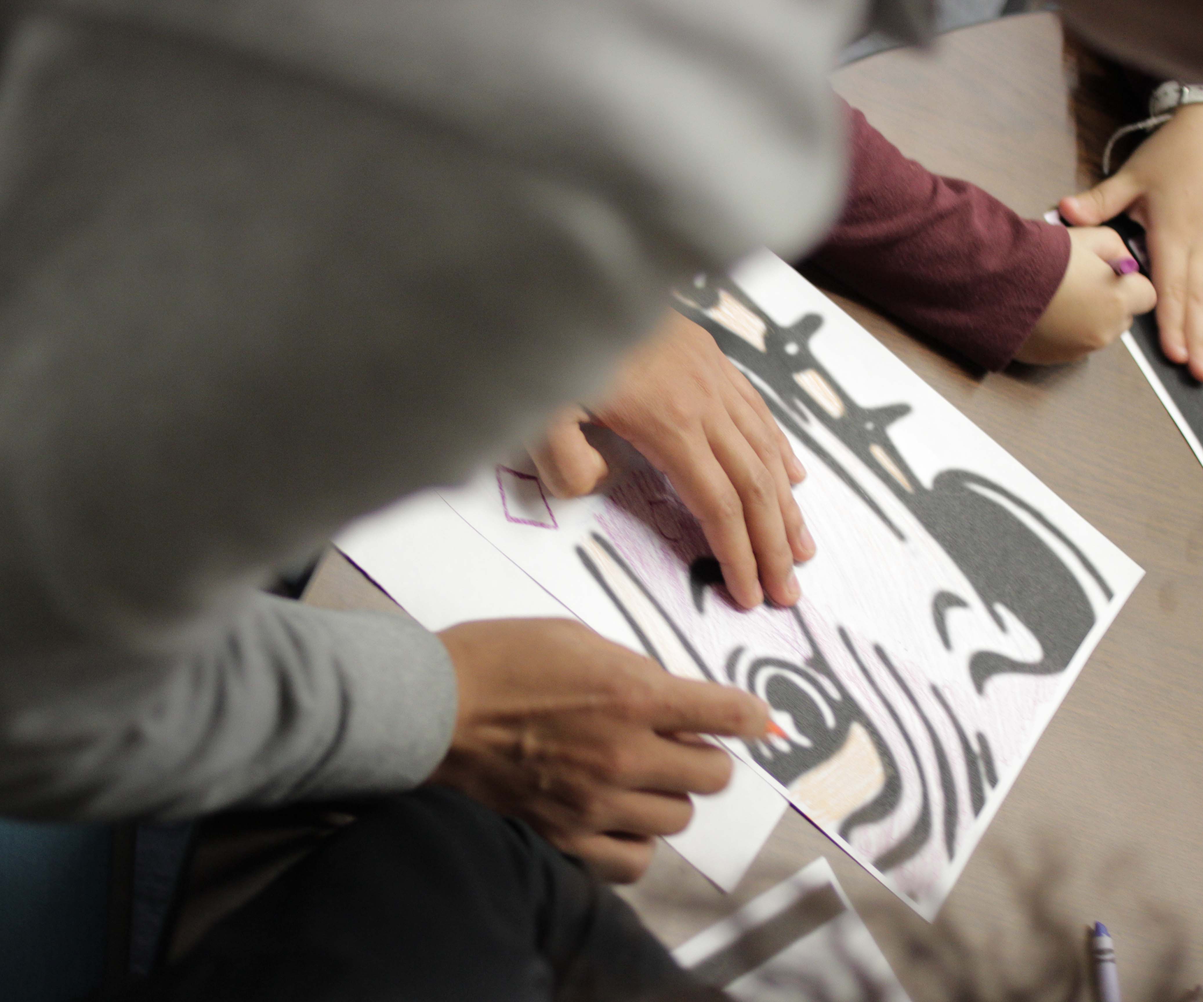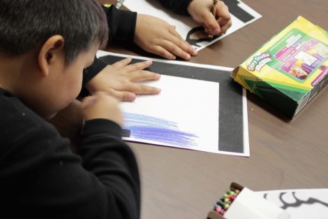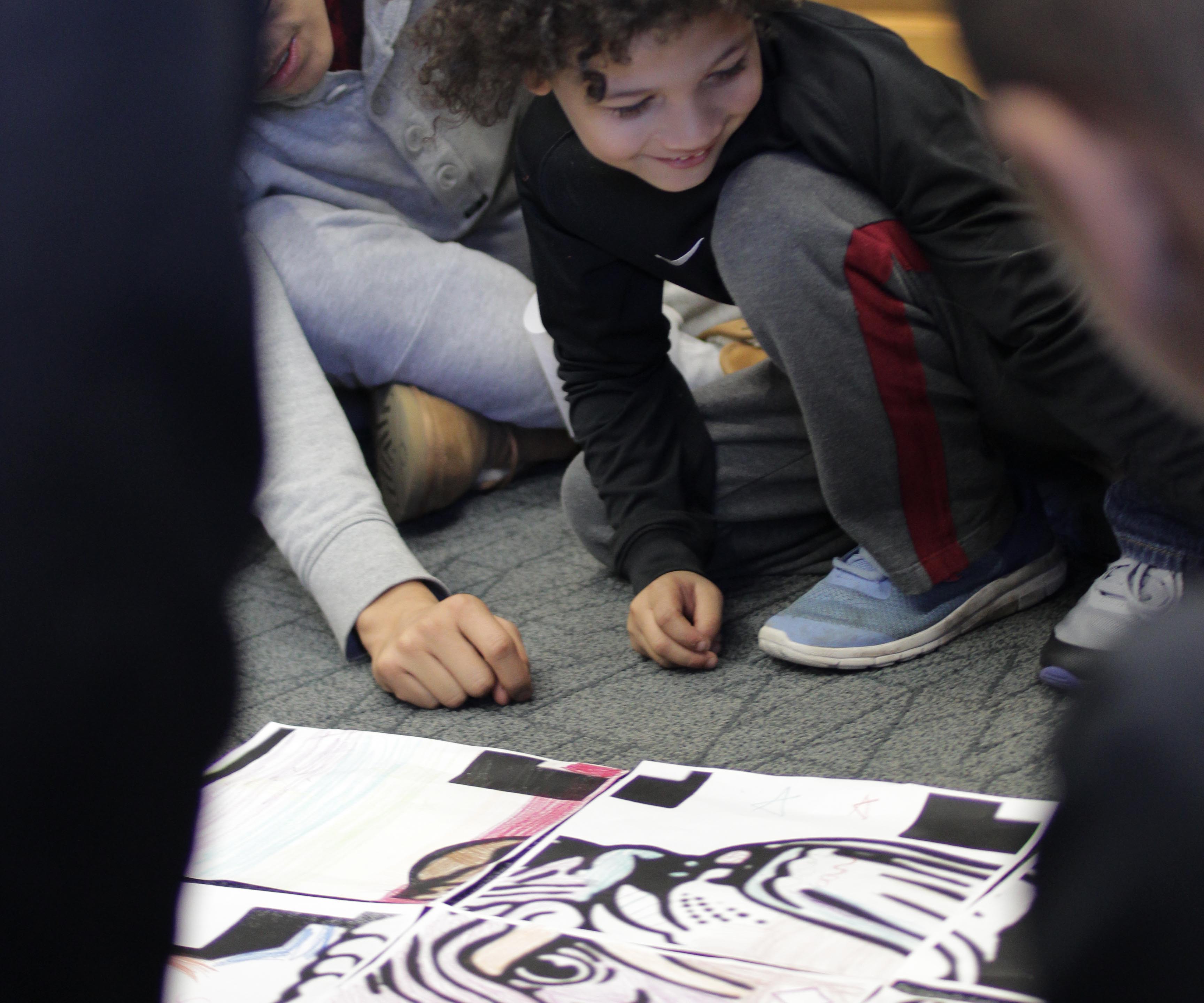 Each child was asked to color a picture. Little did they realize their portion of the picture helped to form a bigger image. Soon they were putting their pieces together to form a colorful school mascot—the Red Rover.