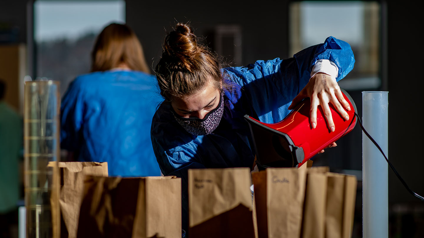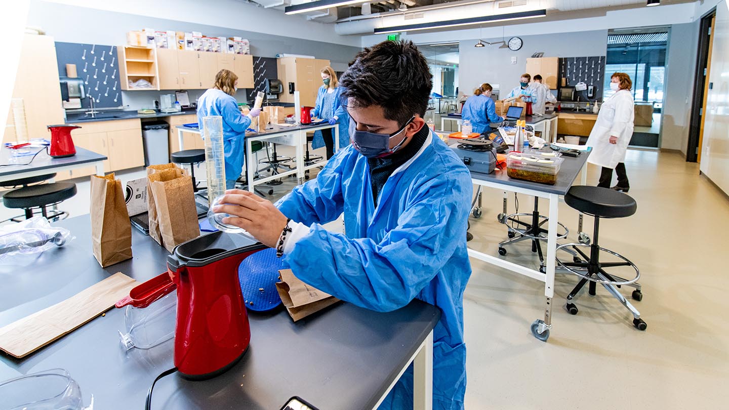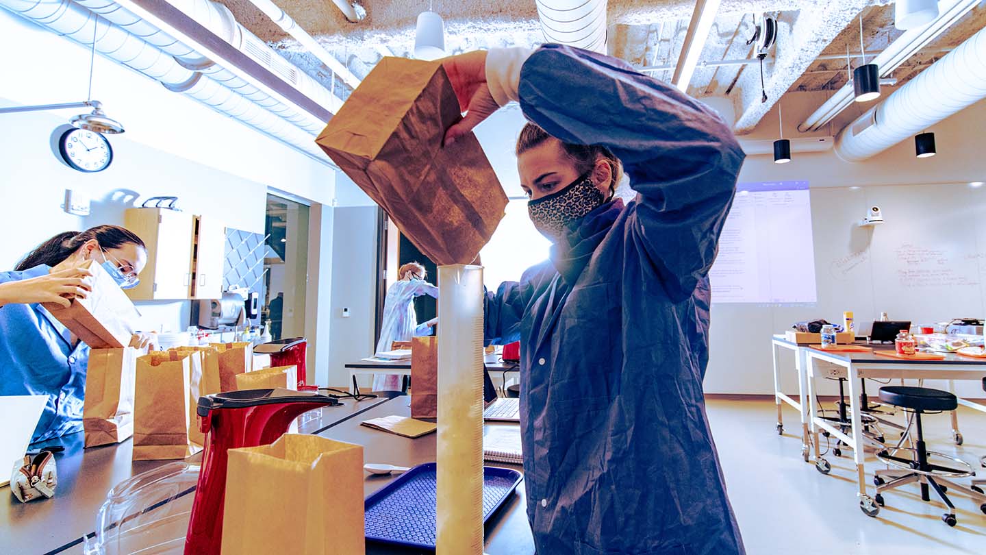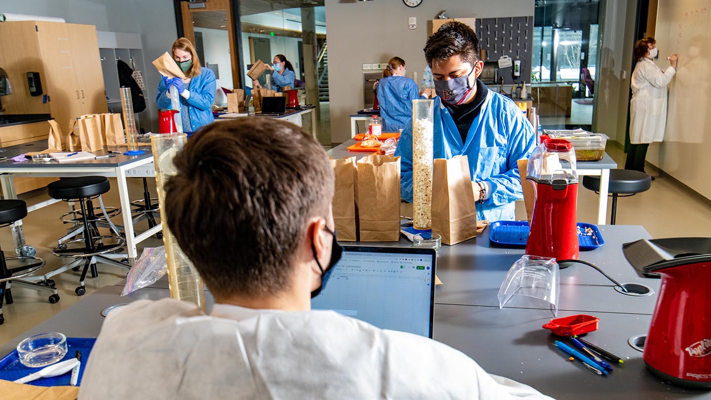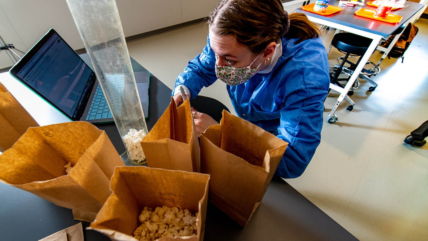 The associate professor of biology has students air pop varieties of popcorn to develop their critical thinking and collaborative abilities when analyzing data.