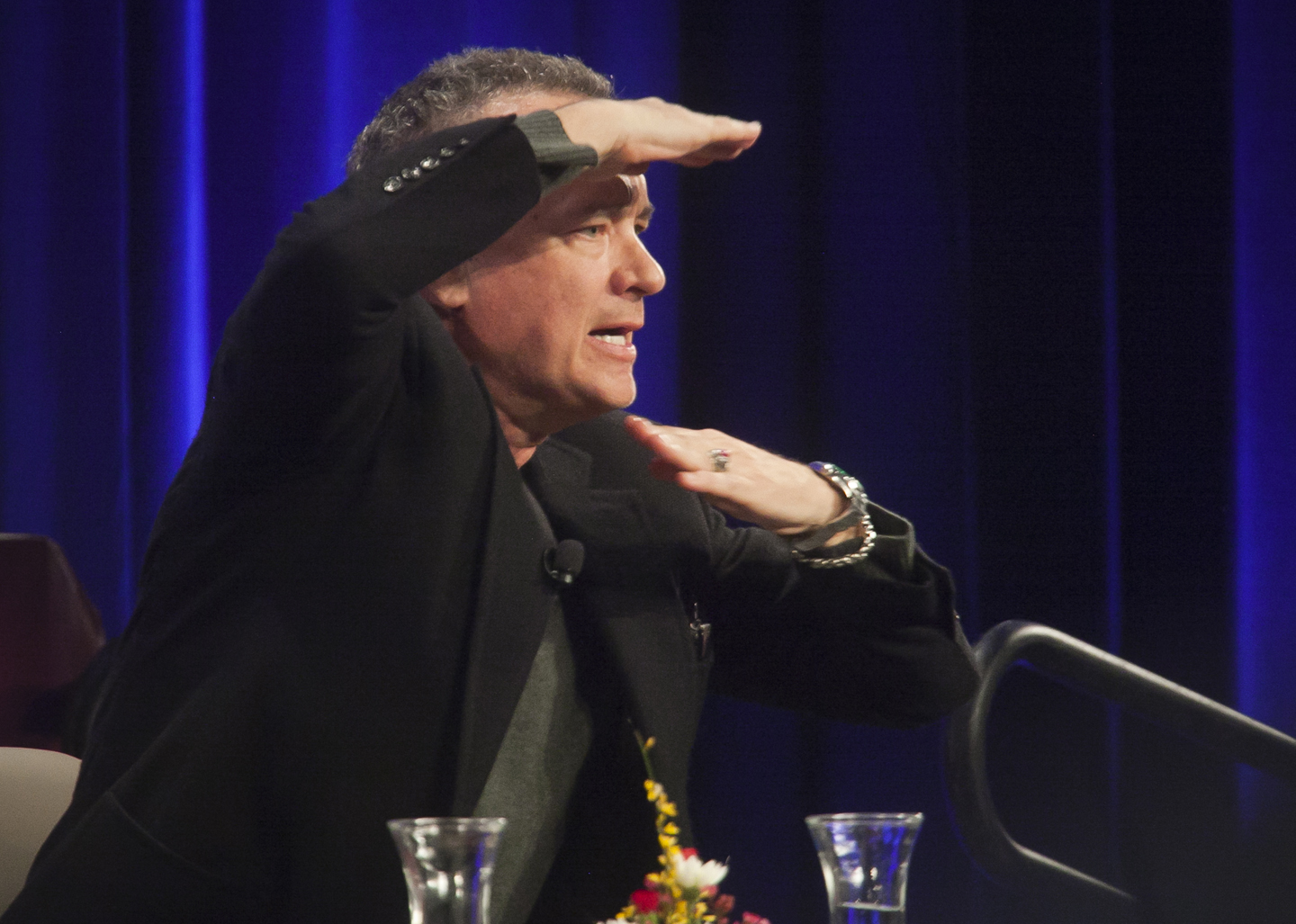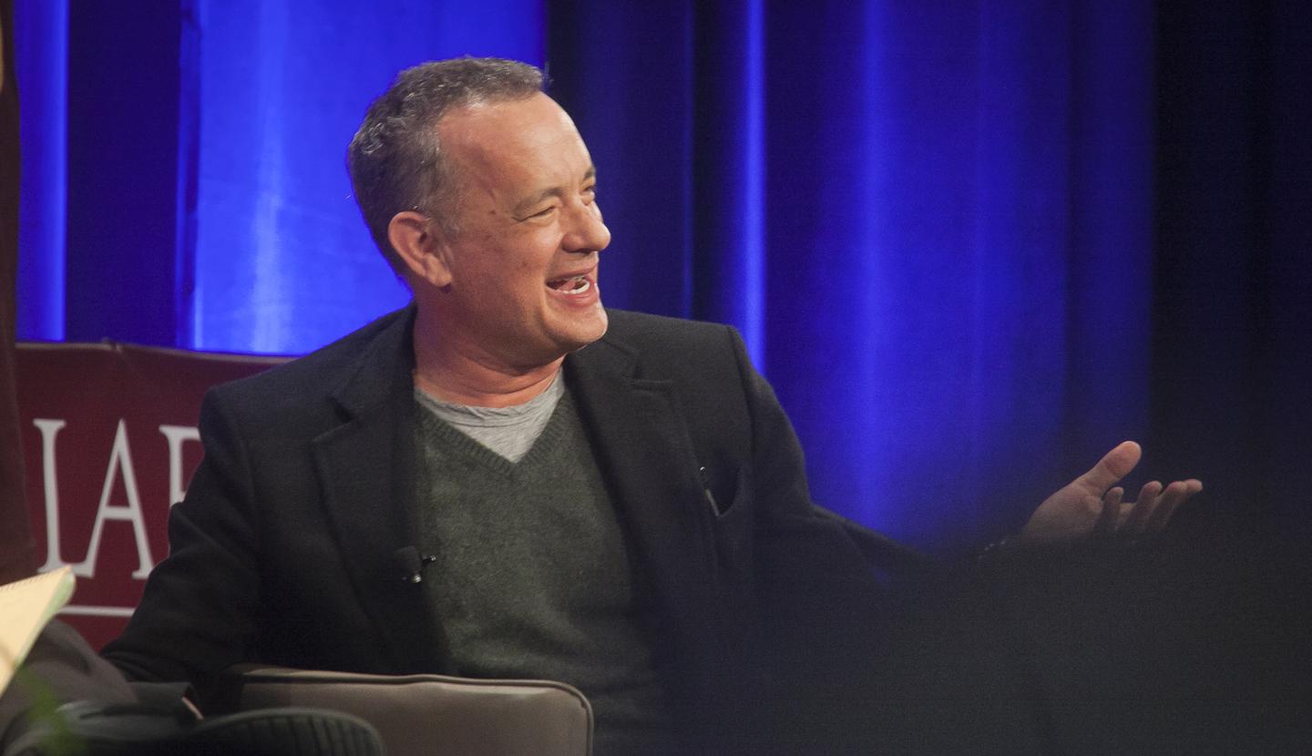“All of the caregivers of my youth … they all had experienced the war,” Hanks told the 1,800 students, faculty, and staff members in attendance. “I was becoming a conscious social being at that time.”
