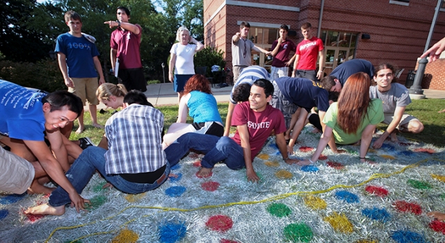 Students got all tied up in knots during a game of giant Twister on the Fisher Quad. Sponsored by Recreation Services, the event was a fun way to start…