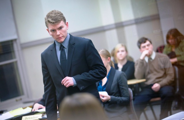 Lafayette’s mock trial team took first place at the Philadelphia Regional Tournament hosted this month by Villanova University. Ryan Kraus ’15 (Stamford…